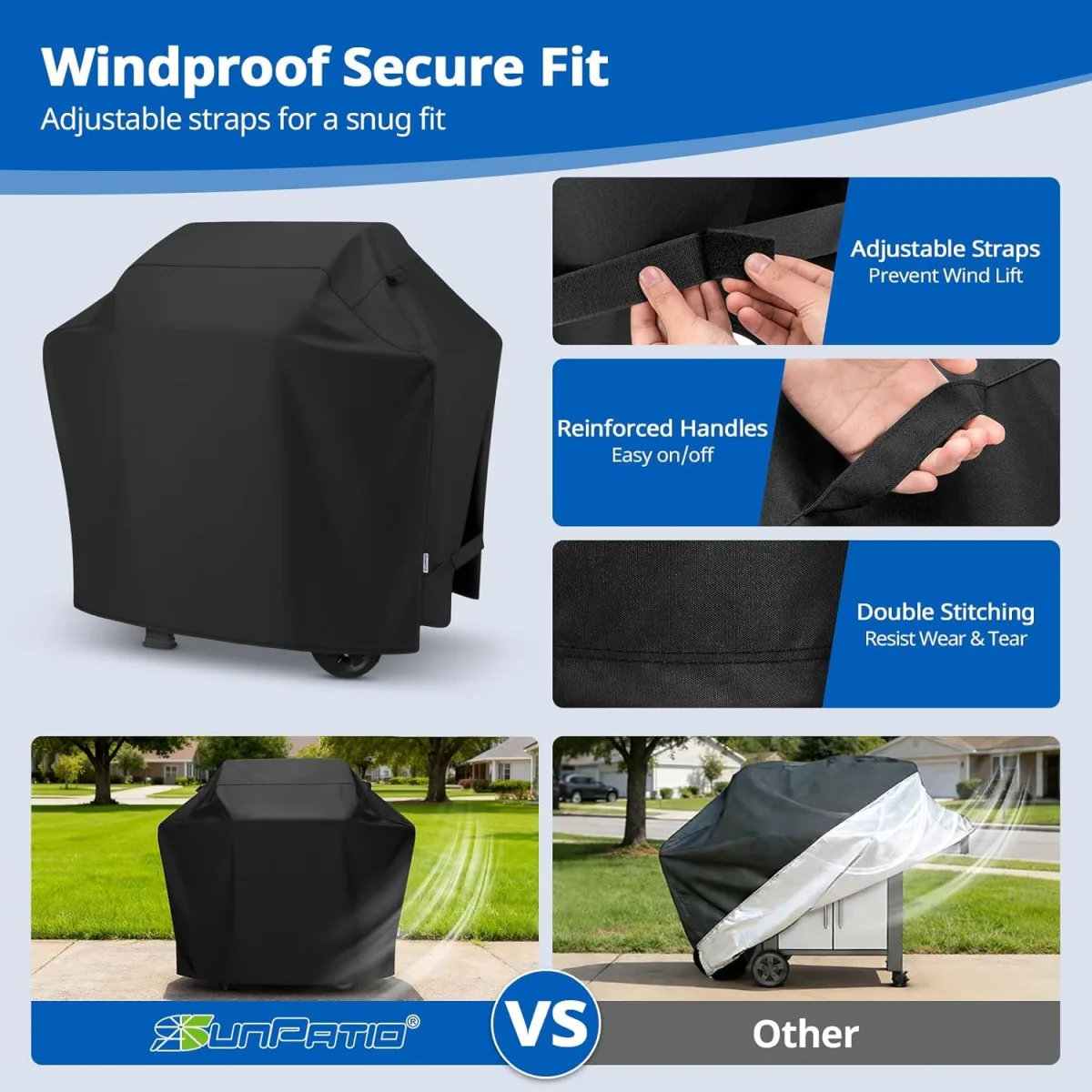 We had a particularly blustery day with gusts up to 30 mph. My previous covers would often partially detach or flap wildly, sometimes even blowing completely off if I hadn't secured them perfectly. With the SunPatio, the adjustable buckles that snap around the grill's legs were brilliant. Even in the strongest winds, the cover stayed firmly in place. I watched it from my kitchen window during one particularly blustery afternoon, and while it shifted a little, it never threatened to take flight. The air vents also seemed to do their job, preventing the cover from ballooning up like a sail. This was a massive relief and a huge point of satisfaction for me.