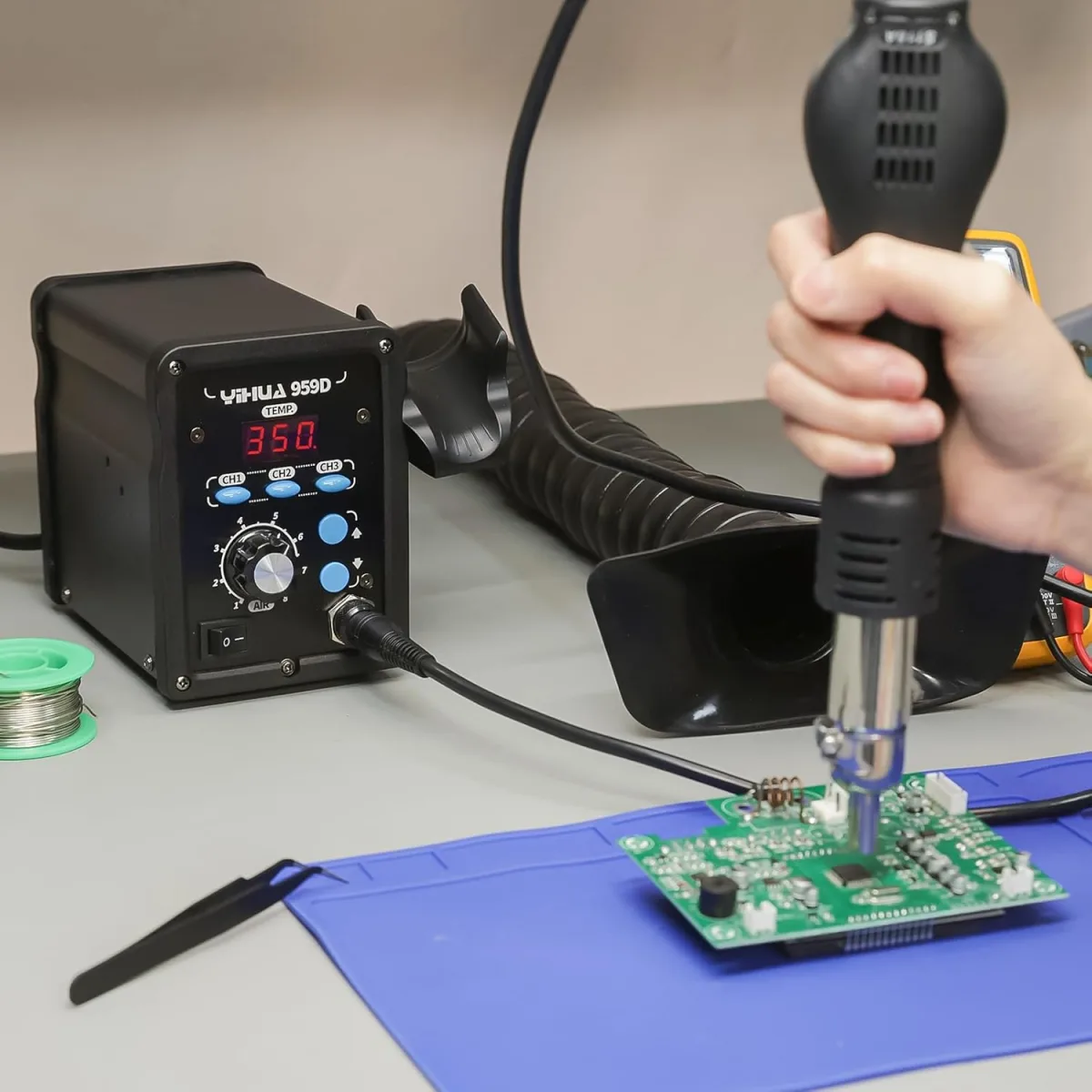 I've been tinkering with electronics for a few years now. Mostly through-hole stuff, but recently I needed to replace a faulty surface-mount (SMD) chip on a busted game console motherboard. My regular soldering iron just wasn't going to cut it for a multi-pin chip. I needed hot air. But looking at the prices of professional Hakko or Weller rework stations made my wallet cry. I stumbled across the YIHUA 959D online. It looked decent, had a digital display, and was cheap enough that I wouldn't feel guilty if I only used it a few times a year. So, I decided to pick one up here. After a solid month of using it for desoldering, heat shrinking, and even a little plastic welding, I have some strong opinions.